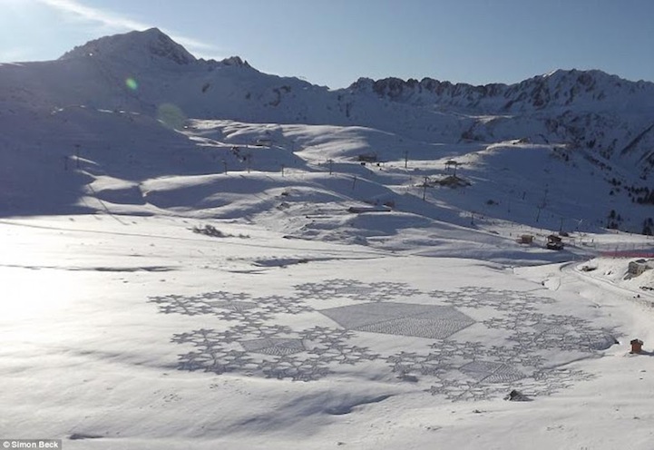 Man Walks All Day to Create Spectacular Snow Patterns Artist Simon Beck must really love the cold weather! Along the frozen lakes of Savoie, France, he spends days plodding through the snow in raquettes (snowshoes), creating these sensational patterns of snow art. Working for 5-9 hours a day, each final piece is typically the size of three soccer fields! The geometric forms range in mathematical patterns and shapes that create stunning, sometimes 3D, designs when viewed from higher levels. How long these magnificent geometric forms survive is completely dependent on the weather. Beck designs and redesigns the patterns as new snow falls, sometimes unable to finish a piece due to significant overnight accumulations. Interestingly enough, he said, 'The main reason for making them was because I can no longer run properly due to problems with my feet, so plodding about on level snow is the least painful way of getting exercise. Gradually, the reason has become photographing them, and I am considering buying a better camera.” Spectacular art for the sake of exercise! Now... aren't you inspired??? |